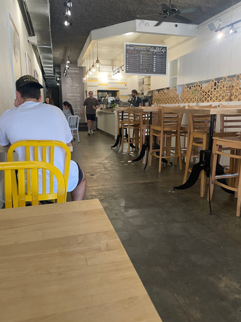 Final word of advice. This place fills up quickly on the weekends! Lines are long and tables are full. I was blessed to go on a weekday and to my surprise it was mostly empty. It’s also not the most aesthetically pleasing coffee shop as you can probably tell in the picture. One other one-off note, their ceiling fan kept making an annoying clicking noise today and it’d occasionally ruin my focus.