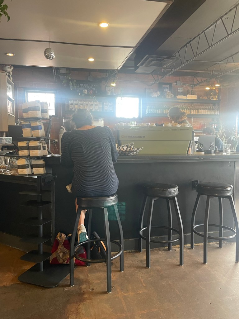 The vibes inside are mixed. People are working, some chatting in business clothes, and some reading. I enjoyed the mix of clientele. There are a small number of tables inside and outside, but I can see it filling up quick. Even with the amount of parking spots open there still wasn’t much places to sit. My hand was forced in choosing a table in the middle of the room instead of a preferred spot against the wall.