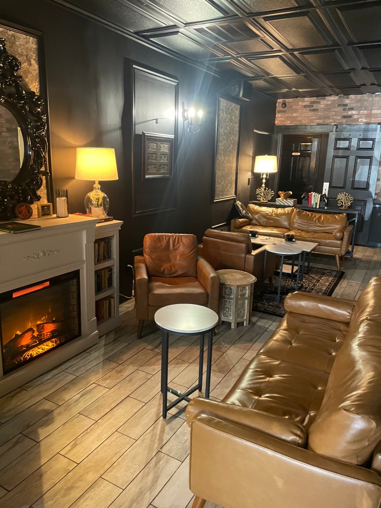 This Sugar Land coffee shop is located in a shopping strip right next to a Half Price Books. I know what I’m doing after. The front is set up like your standard coffee shop with tables scattered about and the barista stand. I felt a little awkward taking a picture since it was packed and I couldn’t help but feel that people took note of me checking out the aesthetic. That’s something I should probably get over. Anyways, the back is the standout. It feels like you’re in a cozy cabin with the ambient lighting, fireplace, leather couches and seats.